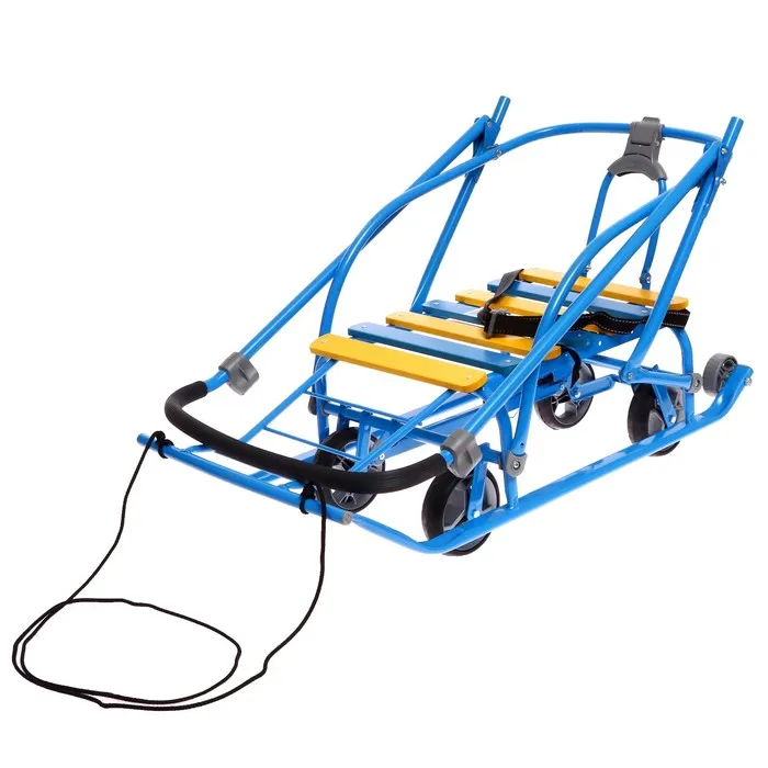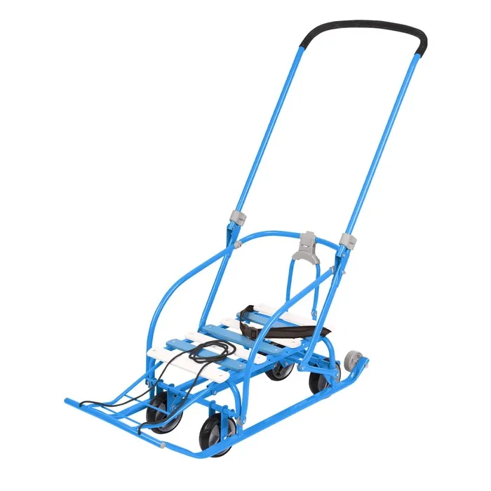 Санки детские складные Nikki 3, с колёсами, с ручкой, цвет синий — Характеристики