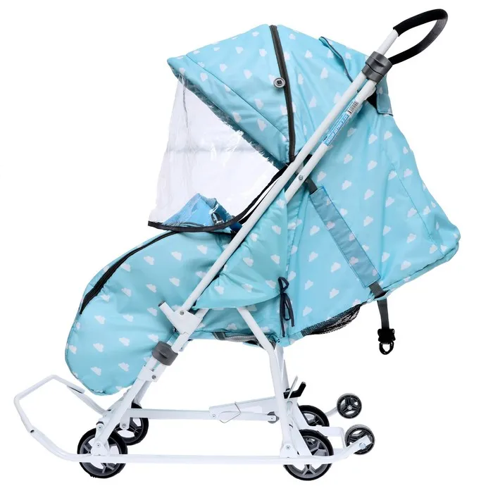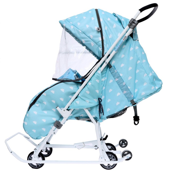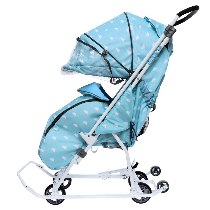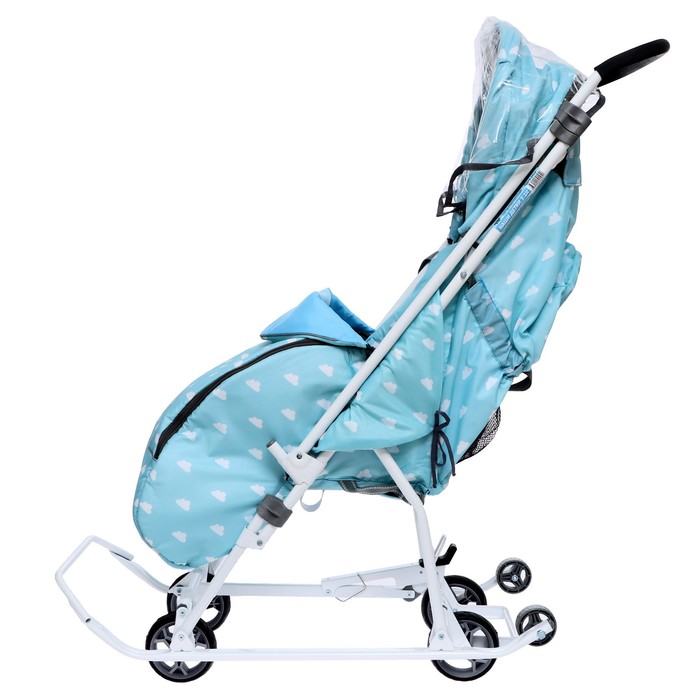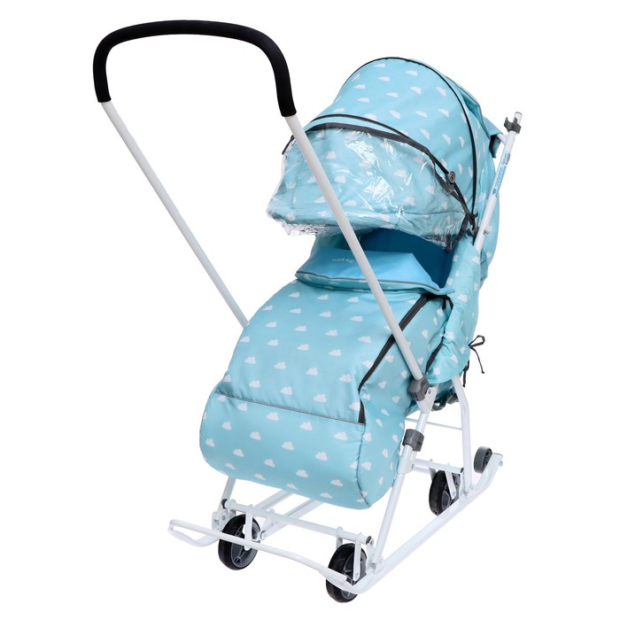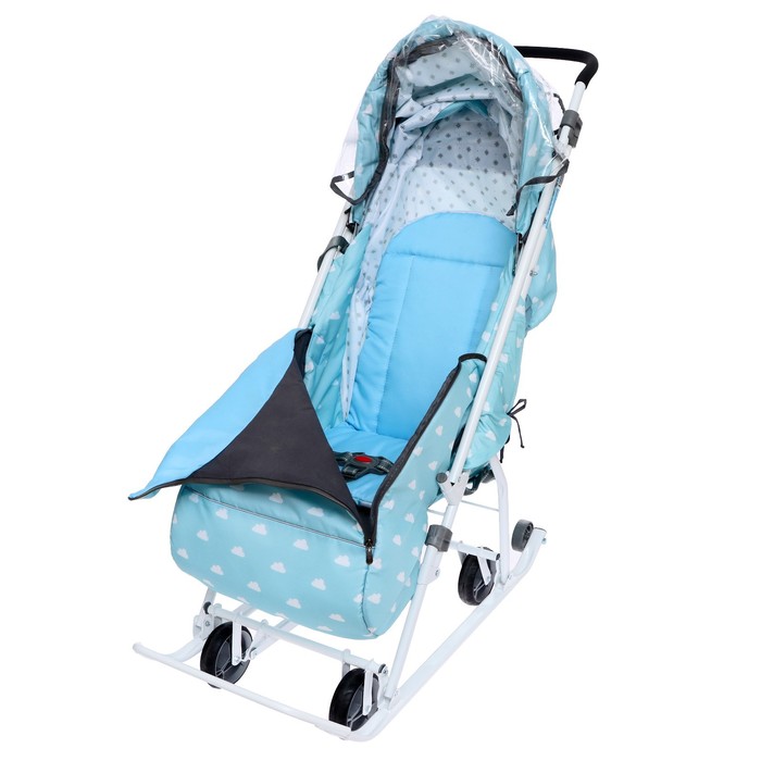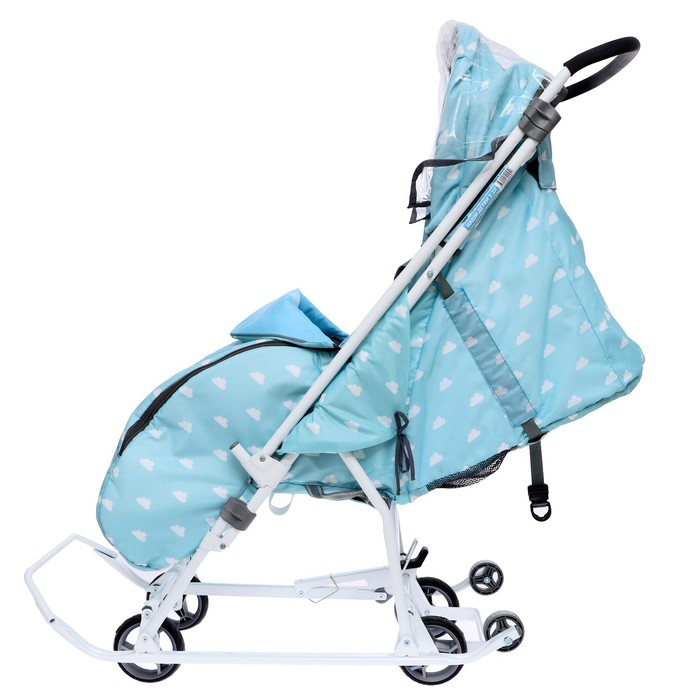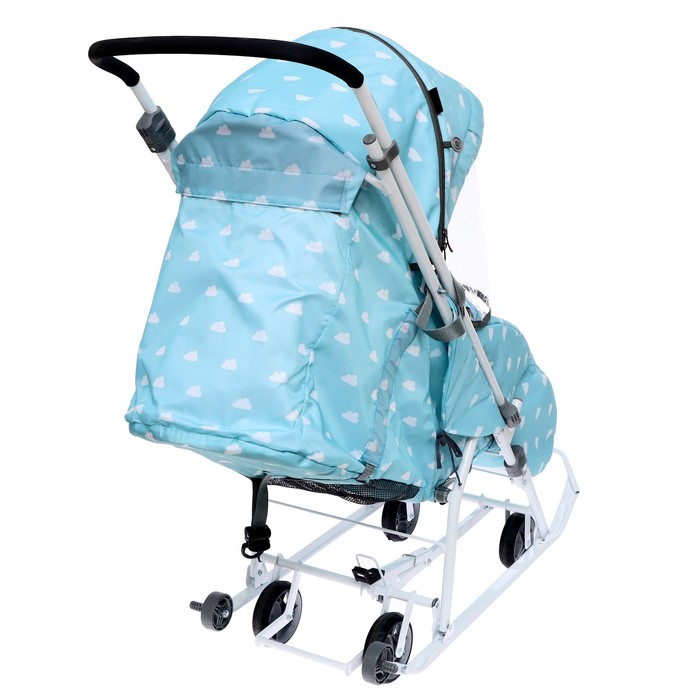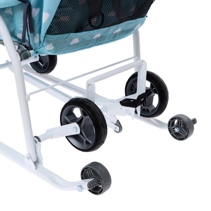 Санки-коляска «Наши детки 3-1К», принт с облачками, цвет голубой — Характеристики