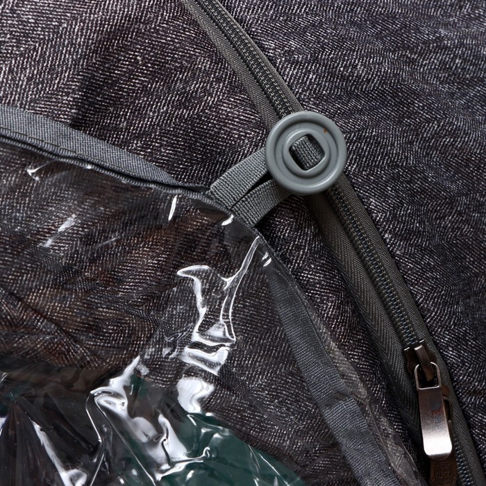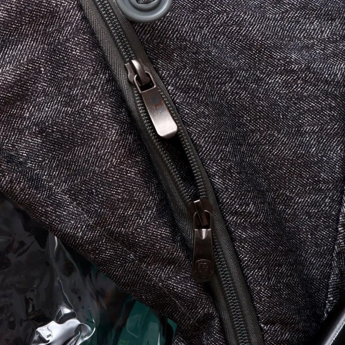 - Четырёхсекционный козырёк и окошко добавляют удобства, одна секция застёгивается на молнию.