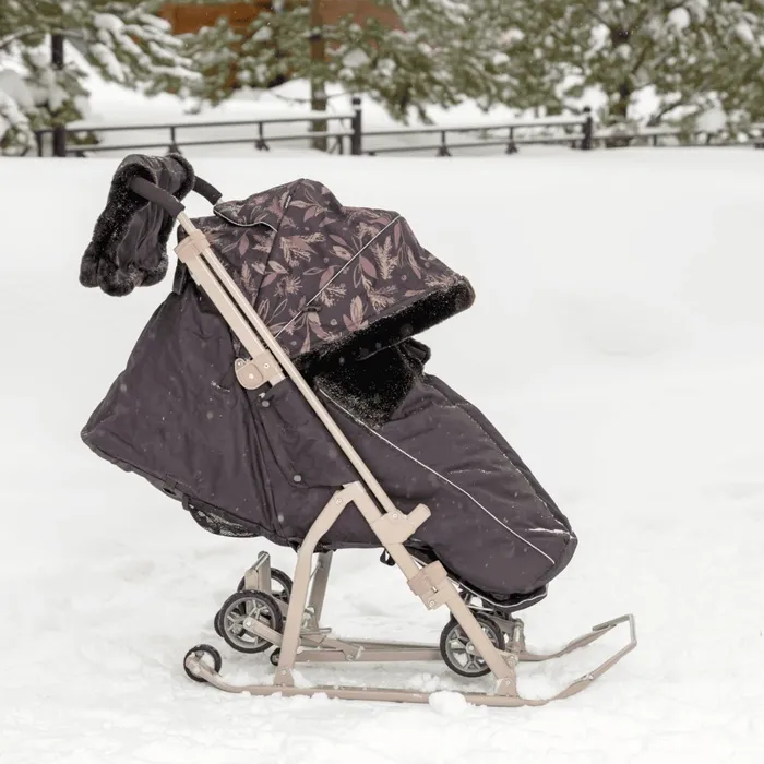 Санки-коляска с утеплённым чехлом и муфтой создана для долгих зимних прогулок. Ребёнок остаётся в тепле, а родители могут легко управлять санками благодаря эргономичной ручке. Богатый шоколадный тон подчёркивает индивидуальность и остаётся практичным в уходе.