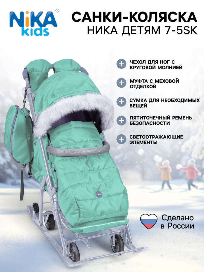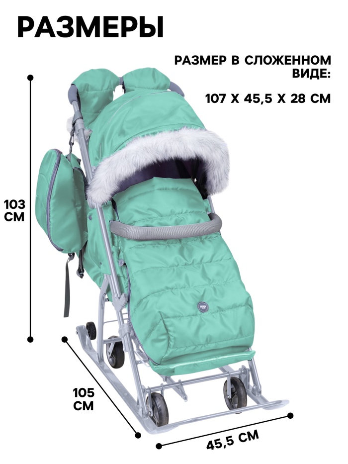 Санки - коляска «Ника Детям 7-5SK», чехол для ног, рукавички, сумка, мятный — Характеристики