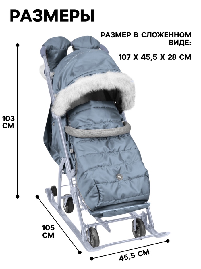 Санки - коляска «Ника Детям 7-5SK», чехол для ног, рукавички, сумка, серый — Характеристики