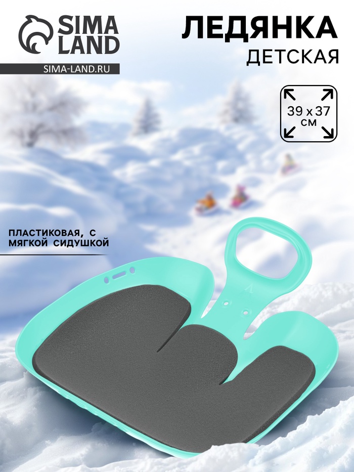 Санки-ледянки с мягкой сидушкой «Вираж», бирюзовые, 39×37 см — Характеристики
