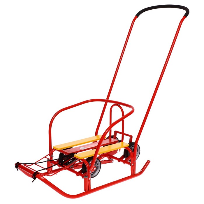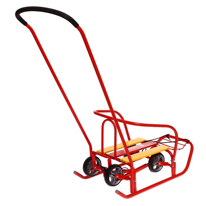 - Колёса и полозья позволяют свободно передвигать санки по любой дороге.