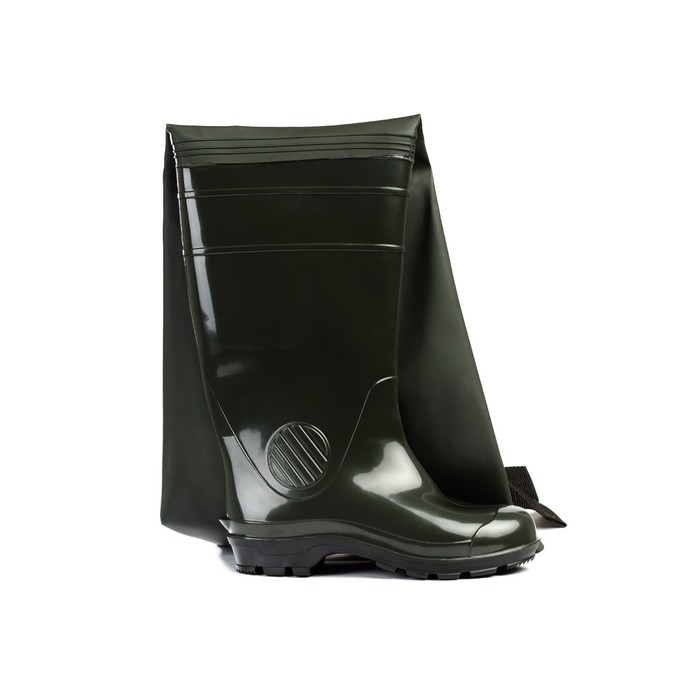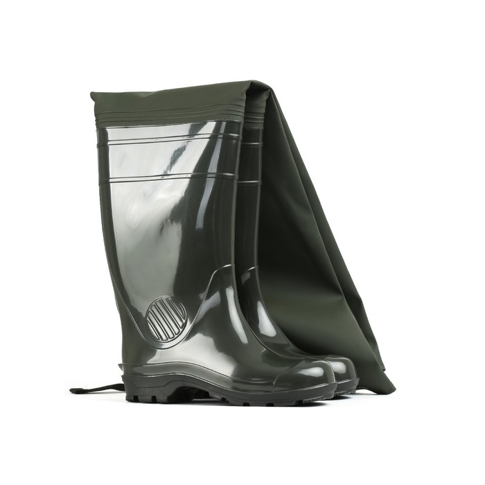Изготовлены из ПВХ методом двухкомпонентного литья, что обеспечивает 100% защиту от влаги. Плотная подошва с ребристым протектором устойчива на скользком грунте. Усиленные стелька, носок и пятка защищают ноги от повреждений о камни и коряги. Благодаря лёгкости материала можно без устали передвигаться по берегу. А в воде сапоги практически невесомые.
