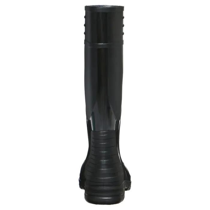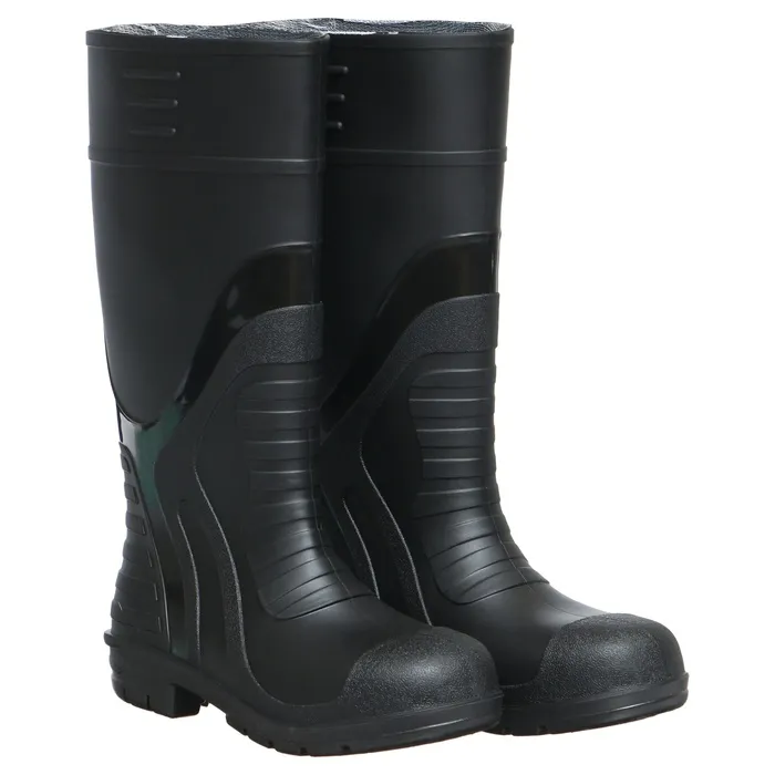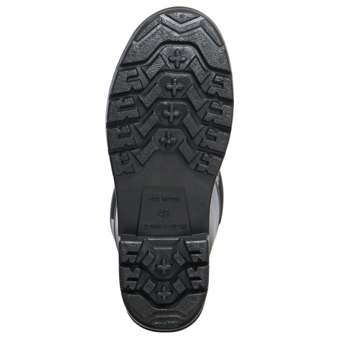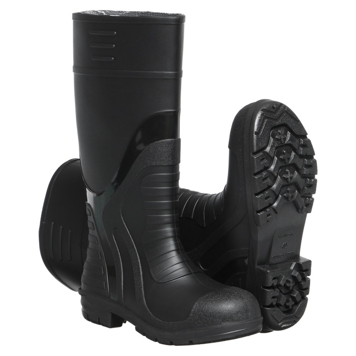 Сапоги специальные, рабочие, унисекс, изготовлены из ПВХ и предназначены для защиты ног от промокания и загрязнений. Выполнены по технологии двухкомпонентного литья методом горячего формования, внутри — тканевое покрытие. Протектор подошвы обладает противоскользящими свойствами. Сапоги удобны и практичны. Нижний температурный предел — -5ͦ. Имеется манжета (надставка) из водоотталкивающей ткани с фиксатором. Высота сапога 42 см. Сапоги изготавливаются с использованием цветных текстильных чулок.