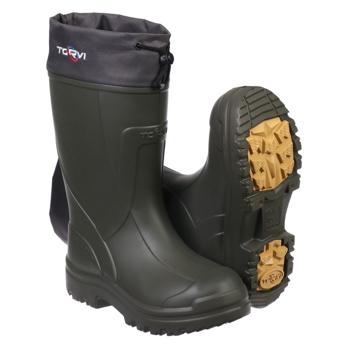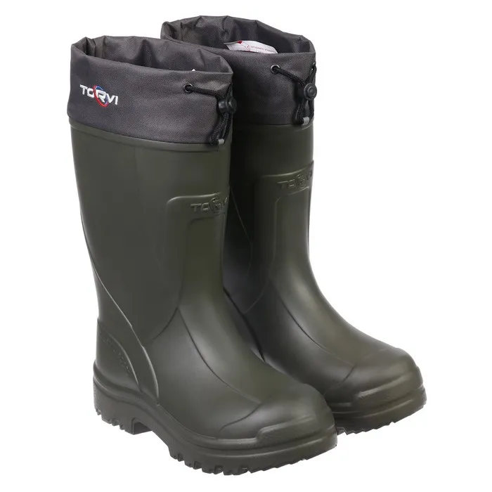Сапоги "Torvi" защитят вас от морозов и подарят комфорт. Верх сапога выполнен из цельнолитого ЭВА. Он выдерживает температуры до -40 °C и, в отличие от обычной резины, не трескается. А ещё все слои материала создают систему, которая надёжно отсекает холод снаружи и сберегает тепло.