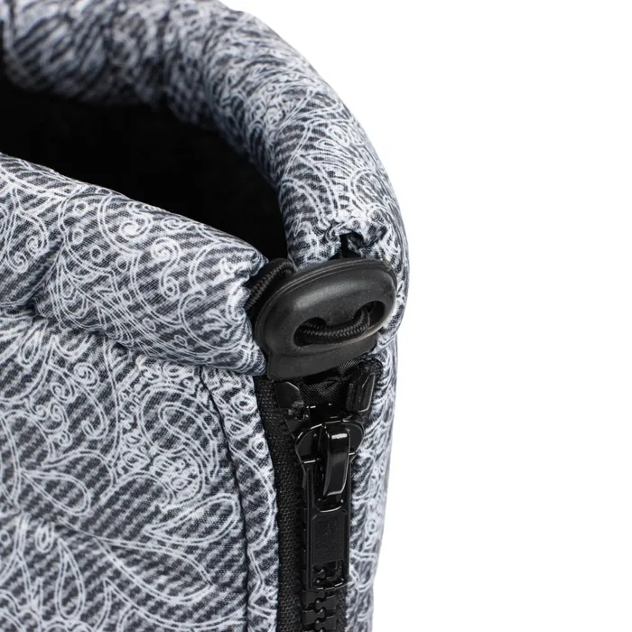 Для дополнительной защиты от проникновения снега предусмотрены молния с текстильным клапаном и фиксатор на резинке.