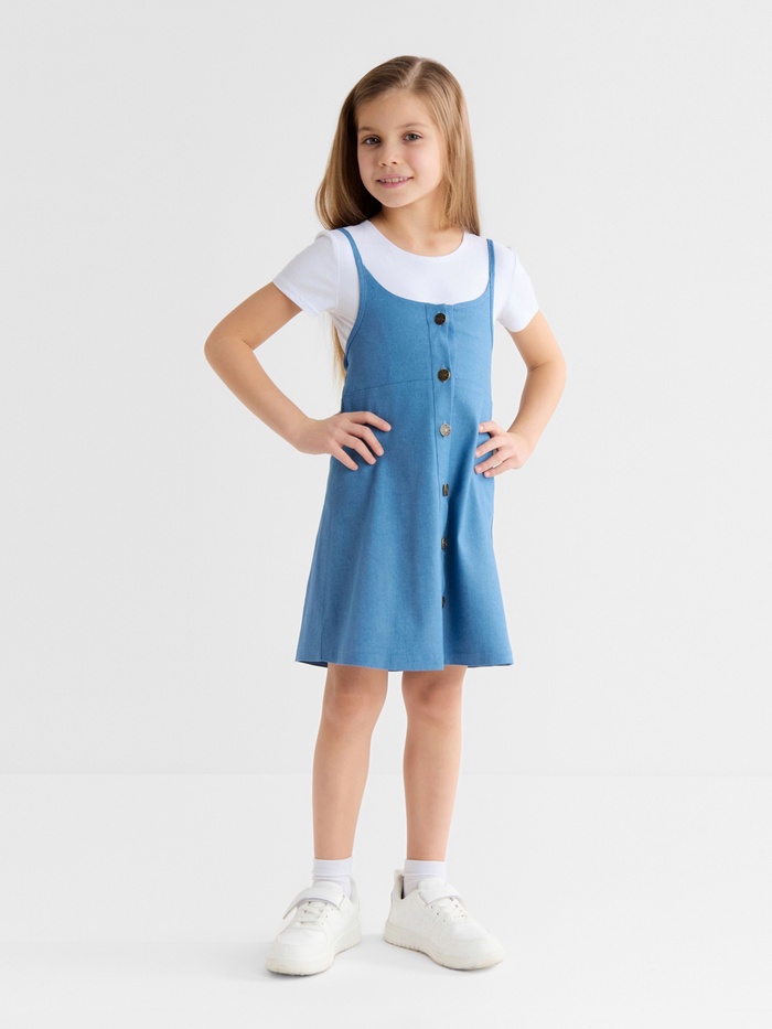 Сарафан для девочки MINAKU: Jeans collection, цвет голубой, рост 128 см — Характеристики