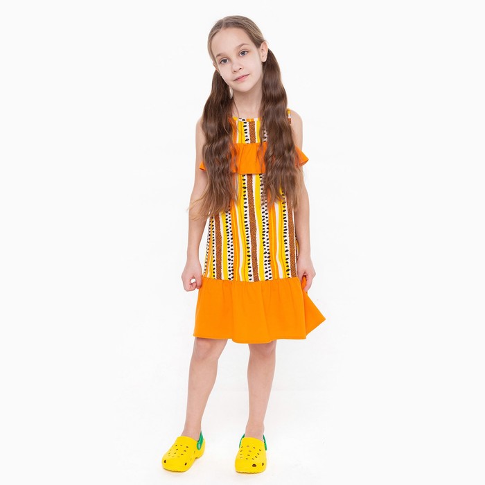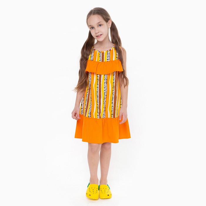 Сарафан для девочки, цвет светло-бежевый/оранжевый, рост 110 см