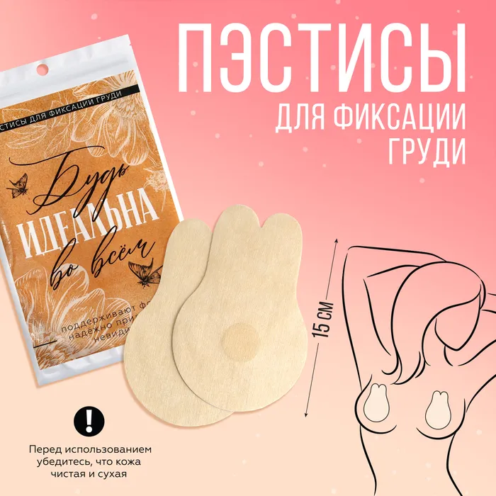 Текстильные наклейки для груди (пэстисы) позволяют не носить бюстгалтер и при этом скрыть соски под облегающей одеждой любого цвета за счет сверхтонкого тканевого материала из которого они изготовлены, гораздо тоньше, чем силиконовые накладки на грудь, поэтому кожа под ними будет дышать. Носите наклейки (пэстисы) под платьем, футболкой, топом. В редких случаях возможна индивидуальная непереносимость. Не использовать на чрезмерно чувствительной, поврежденной или воспаленной коже.