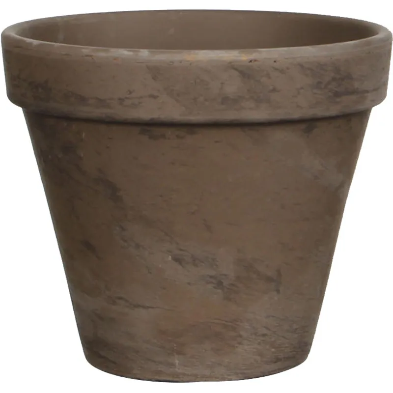 Традиционно оформленный глиняный горшок Базальт. Высота горшка составляет 9,5 см, диаметр — 10 см. Серый цвет идеально впишется в любой интерьер, добавляя нотку изысканности и стиля.