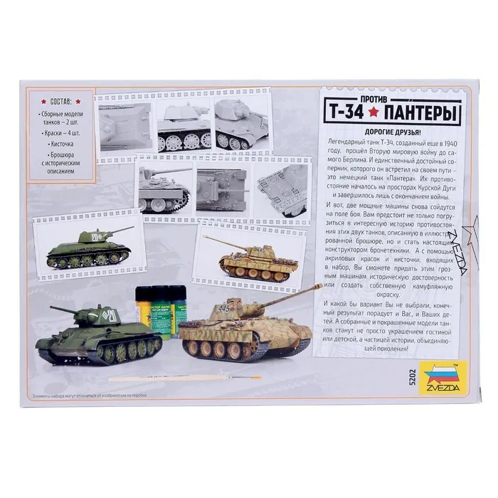 Набор сборных моделей «Великие противостояния: Т-34/76 против «Пантеры» — точные копии двух легендарных танков Второй мировой войны в масштабе 1:72.