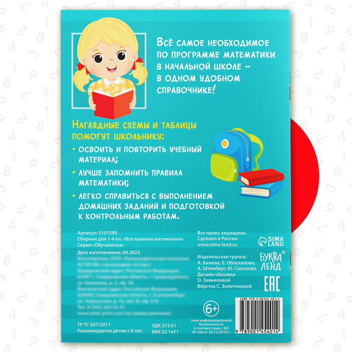 Сборник для 1–4 классов «Все правила математики», 44 стр. — Характеристики