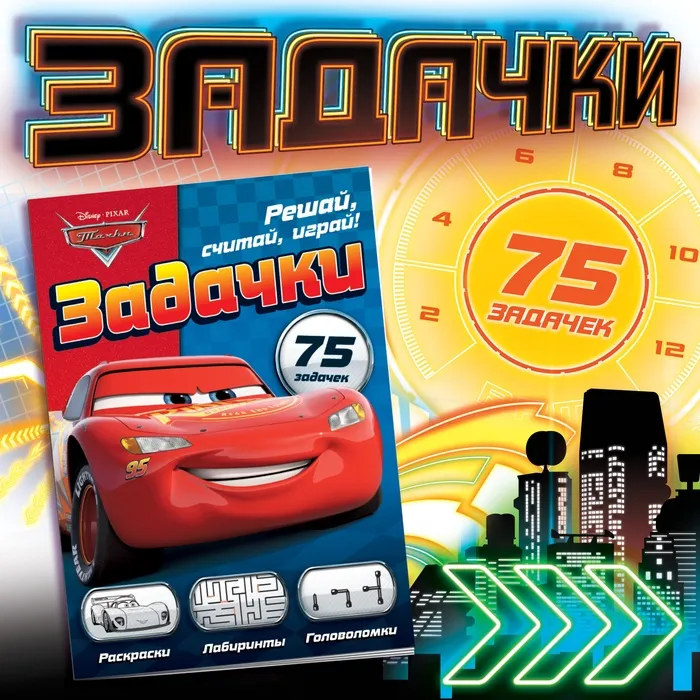 Со сборником задач «Решай, считай, играй» познавать окружающий мир будет легко и интересно. Малыш подружится с Молнией Маккуином, Мэтром и другими героями любимого мультфильма.