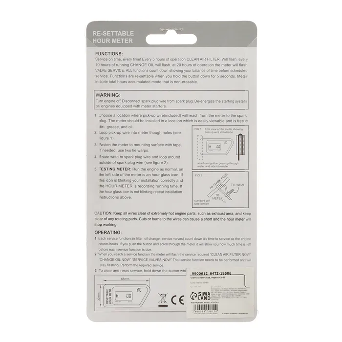 Счетчик моточасов с беспроводным ЖК-дисплеем IP67 черного цвета является идеальным решением для измерения и контроля рабочего времени различного оборудования и техники, включая сельскохозяйственную, строительную, горнодобывающую и промышленную области. Он оснащен беспроводным передатчиком для передачи данных на дисплей в режиме реального времени, без необходимости подключения проводов. ЖК-экран обеспечивает четкое чтение информации о моточасах. Степень защиты IP67 делает его устойчивым к пыли, воде и другим воздействиям, что позволяет использовать его как в помещении, так и на улице. Черный цвет счетчика моточасов придает ему стильный и современный вид, подходящий для любого оборудования. Он легко крепится к различным типам двигателей и генераторов с помощью специальных крепежных элементов, входящих в комплектацию. В целом, это надежный и функциональный счетчик моточасов для контроля работы оборудования и техники в различных условиях.