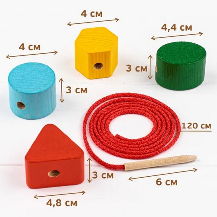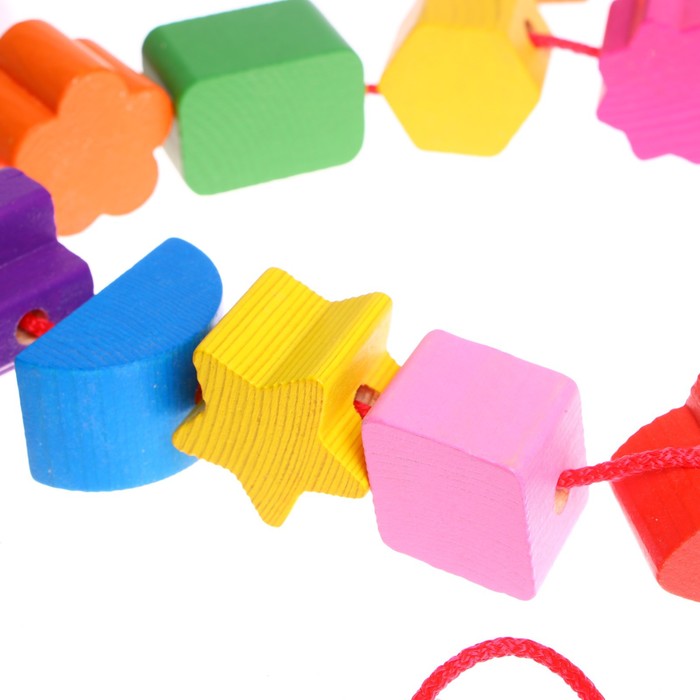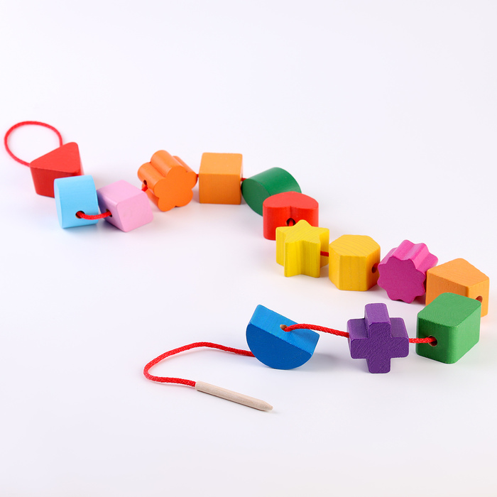 Во время нанизывания деталей на шнурок, развивается мелкая моторика ребёнка, ловкость и усидчивость, сосредотачиваясь на процессе.