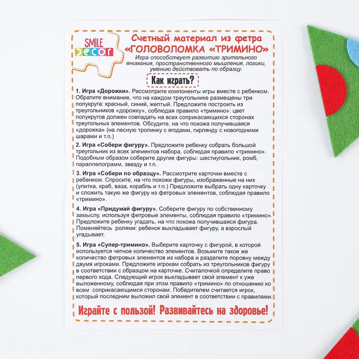 Счётный материал из фетра «Головоломка. Тримино» — Характеристики