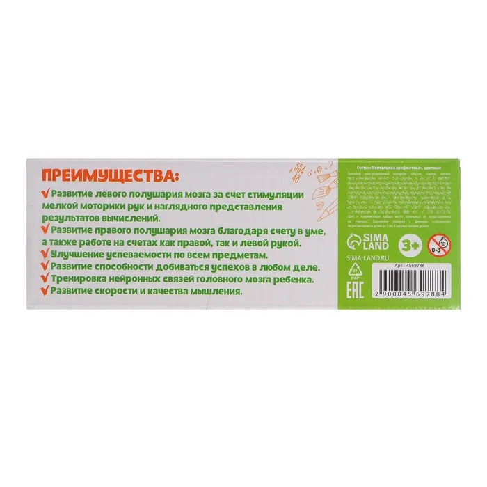 - Развитие левого полушария мозга за счёт стимуляции мелкой моторики рук и наглядного представления результатов вычислений.