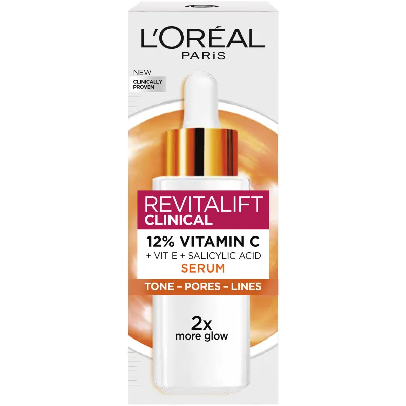 L’Oréal Paris Revitalift Clinical Vitamin C – это осветляющая сыворотка, которая борется с неровностями тона кожи, видимыми порами и морщинами. Состав сыворотки включает 12% чистого витамина C, витамин E и салициловую кислоту. Уже через месяц использования ваша кожа станет в 2 раза более сияющей и в 3 раза более гладкой. Дополните свой уход за кожей утренним кремом с защитой не менее SPF20.