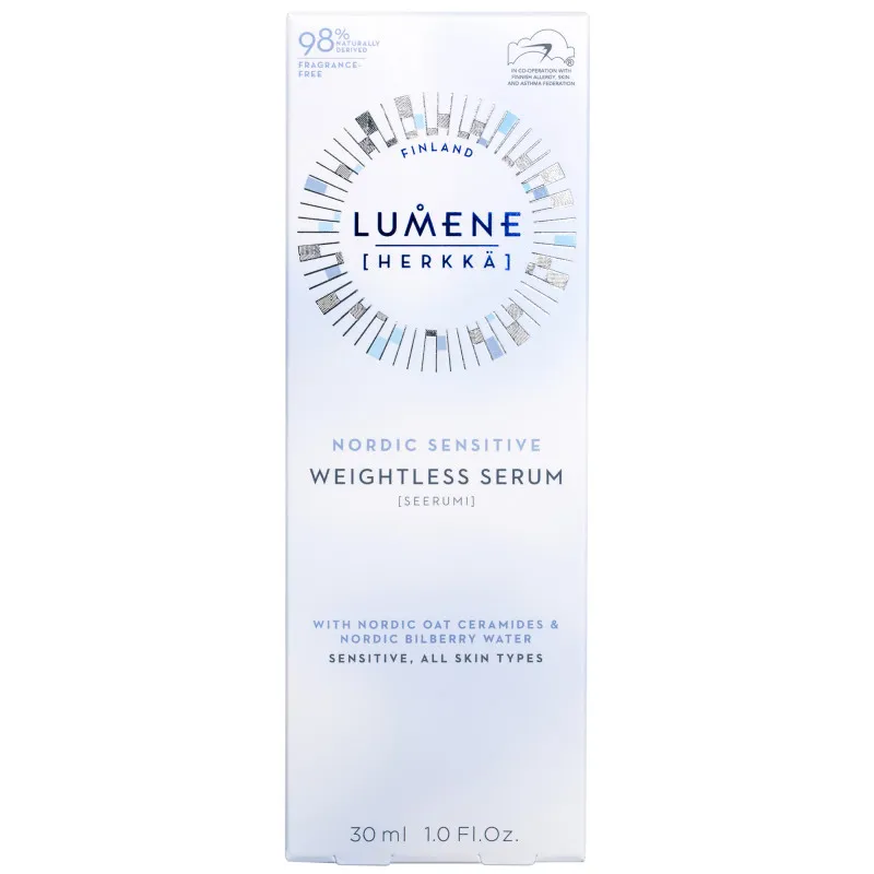Lumene Herkkä Nordic Sensitive успокаивающий серум – это легкое гелевое средство по уходу за кожей, содержащее керамиды и не содержащее отдушек, которое придаёт коже здоровый вид. Серум специально разработан для чувствительной и обезвоженной кожи, так как помогает успокаивать и глубоко увлажнять её на протяжении всего дня. Он также помогает уменьшить покраснения и снимает ощущение стянутости, вызванное сухостью.