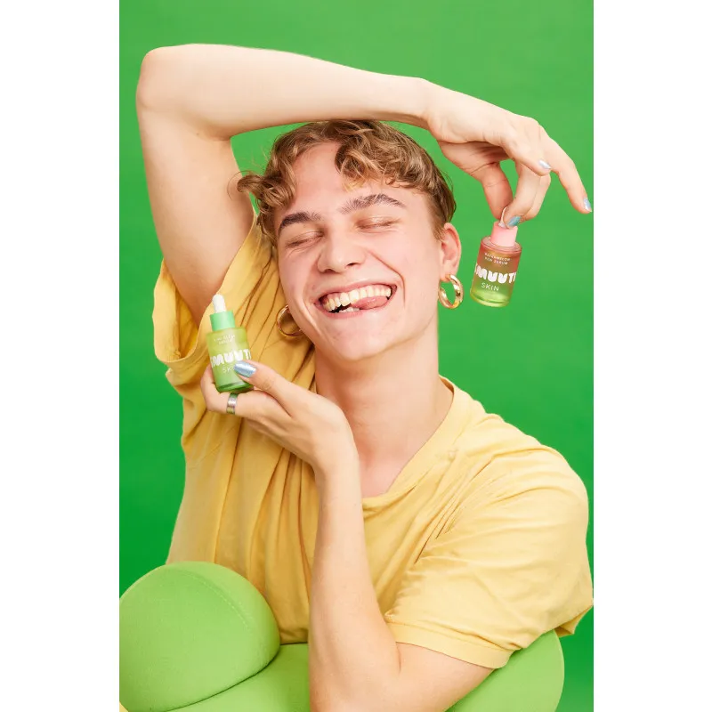 Smuuti Skin Watermelon Dew – это увлажняющая и осветляющая сыворотка, которая быстро впитывается, обеспечивая мгновенное увлажнение кожи. Сыворотка содержит гиалуроновую кислоту в трех различных молекулярных размерах, что способствует глубокому увлажнению кожи. Ниацинамид в составе сыворотки осветляет кожу и укрепляет ее упругость.