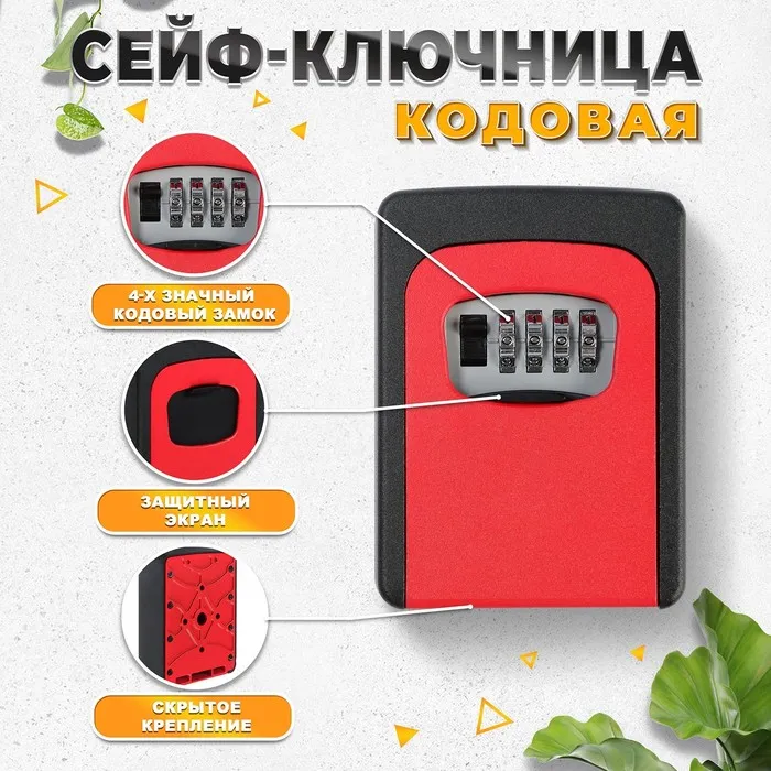 Сейф-ключница кодовая ТУНДРА, металлическая, усиленная, красный — Характеристики