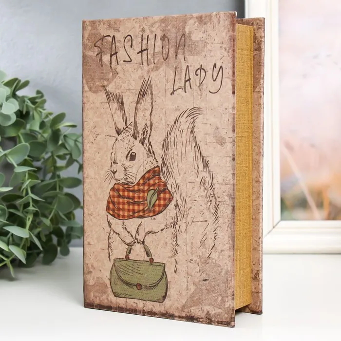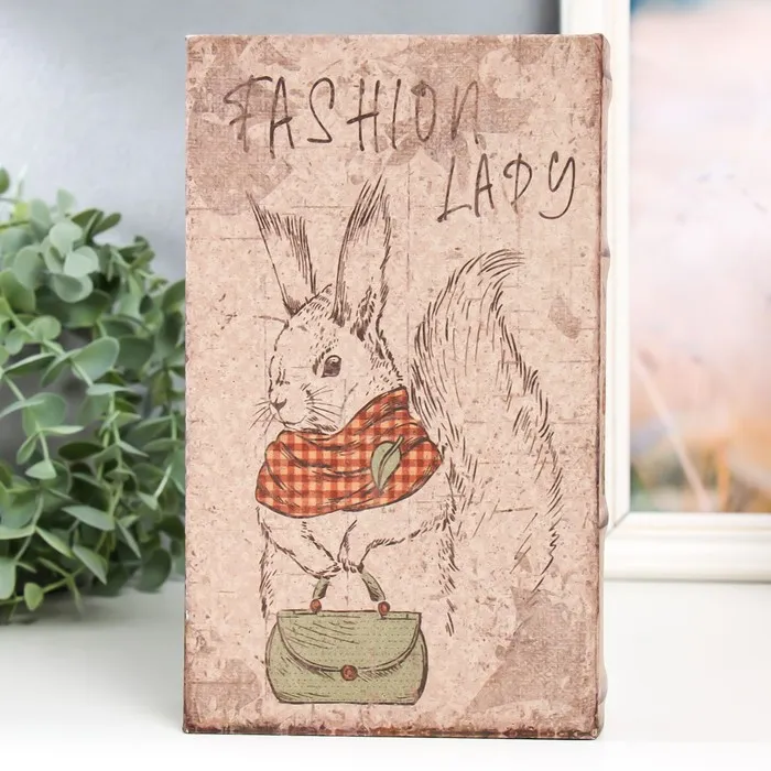 Сейф-книга дерево кожзам "Белочка в палантине и с сумочкой" 21х13х5 см — Характеристики