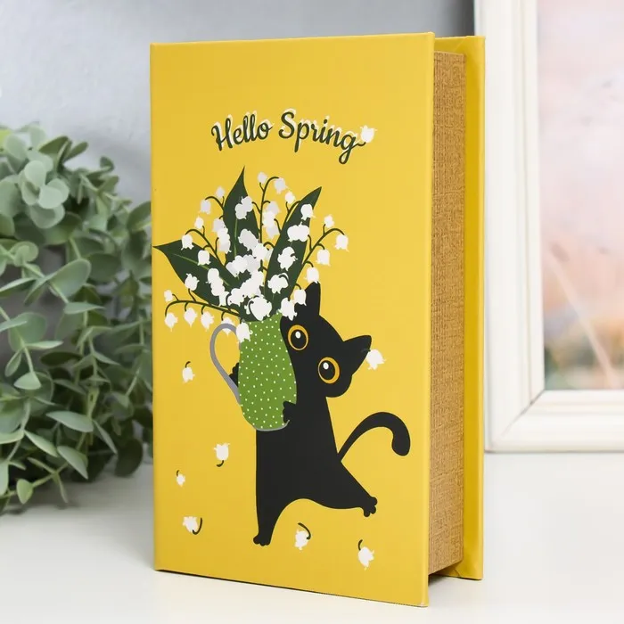 Сейф-книга дерево кожзам "Чёрный кот с ландышами в вазе" 21х13х5 см — Характеристики