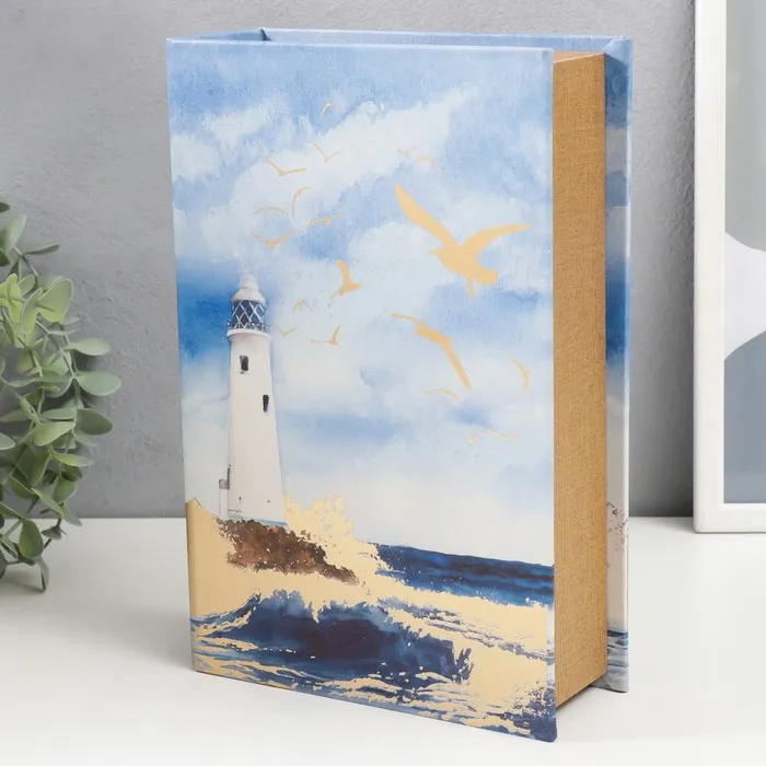 Сейф-книга дерево кожзам "Маяк. Чайки. Золото" 27х18х7 см — Характеристики