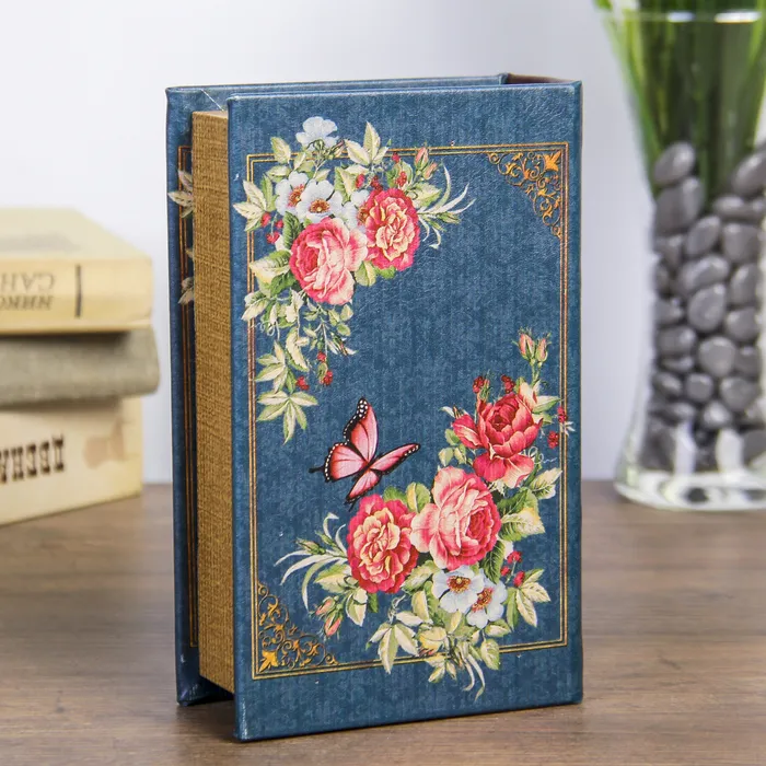 Сейф-книга дерево "Ретро. Цветы. Бабочки" кожзам 17х11х5 см — Характеристики