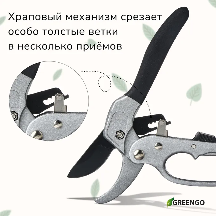 Секатор контактный, 8" (20 см), с храповым механизмом, металлические ручки, Greengo — Характеристики