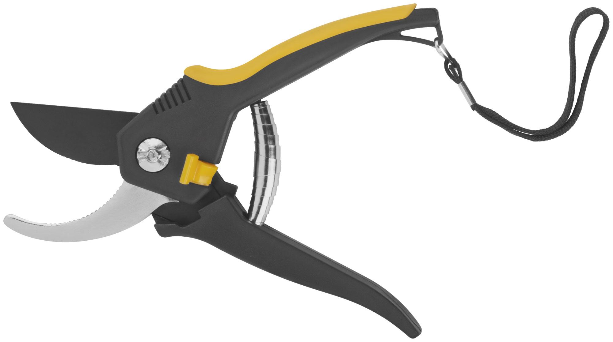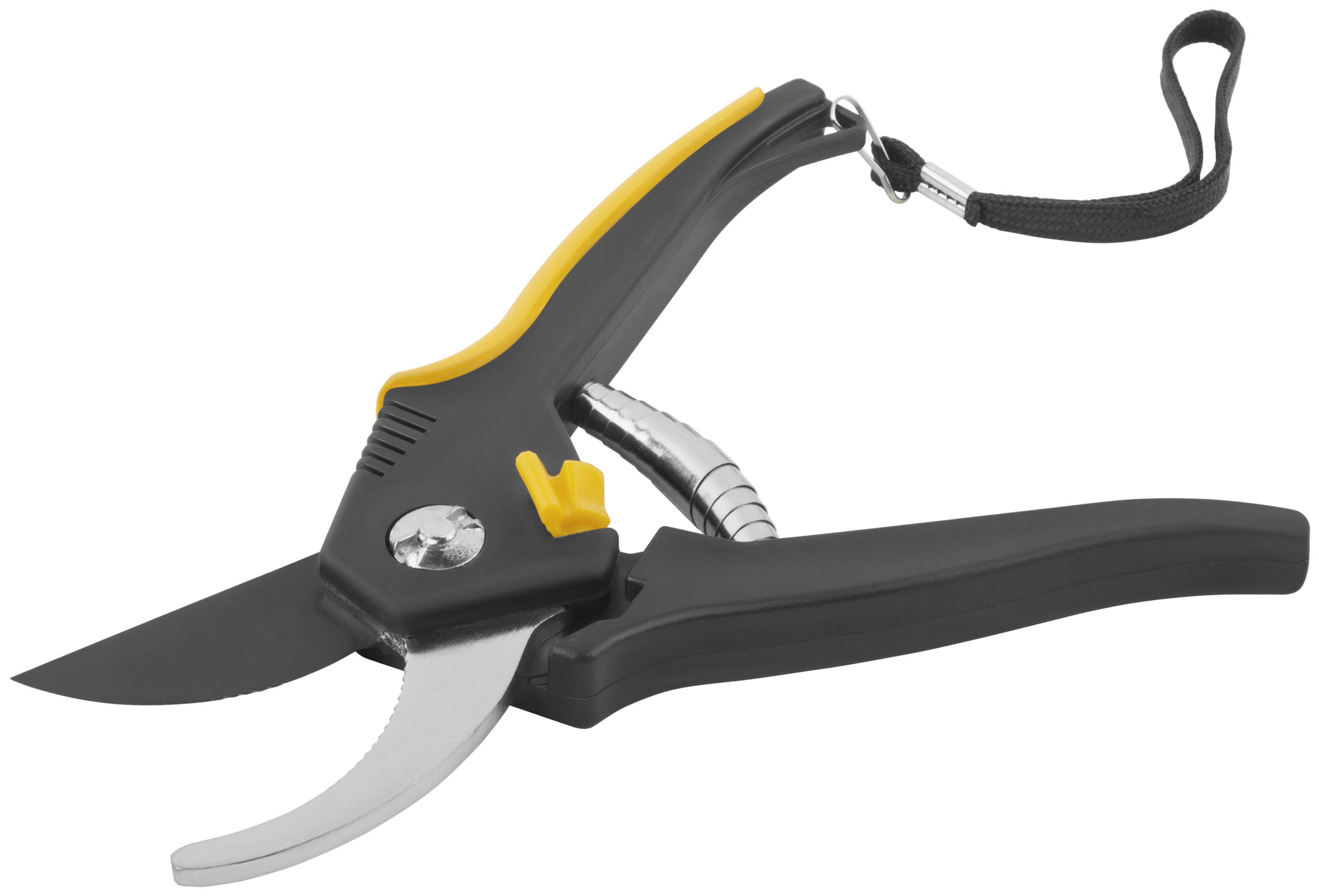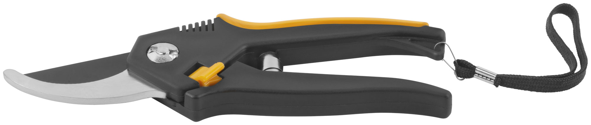 Лезвия секатора изготовлены из высокоуглеродистой инструментальной стали с тефлоновым покрытием, что обеспечивает долговечность и защиту от коррозии. Прорезиненные пластиковые ручки гарантируют надежный захват и комфортную работу даже в условиях повышенной влажности.