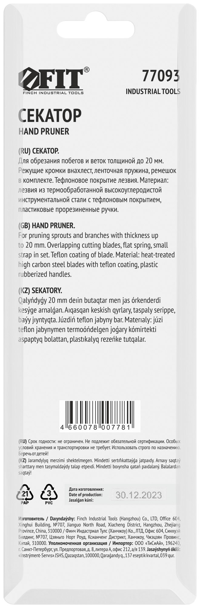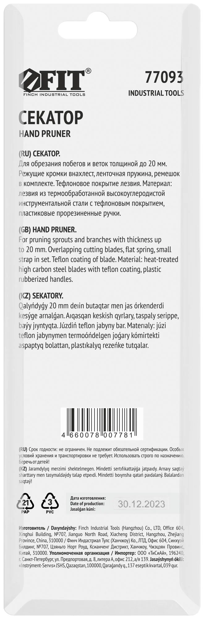 Выберите секатор FIT 77093, чтобы обеспечить качественную и комфортную обрезку ваших растений.