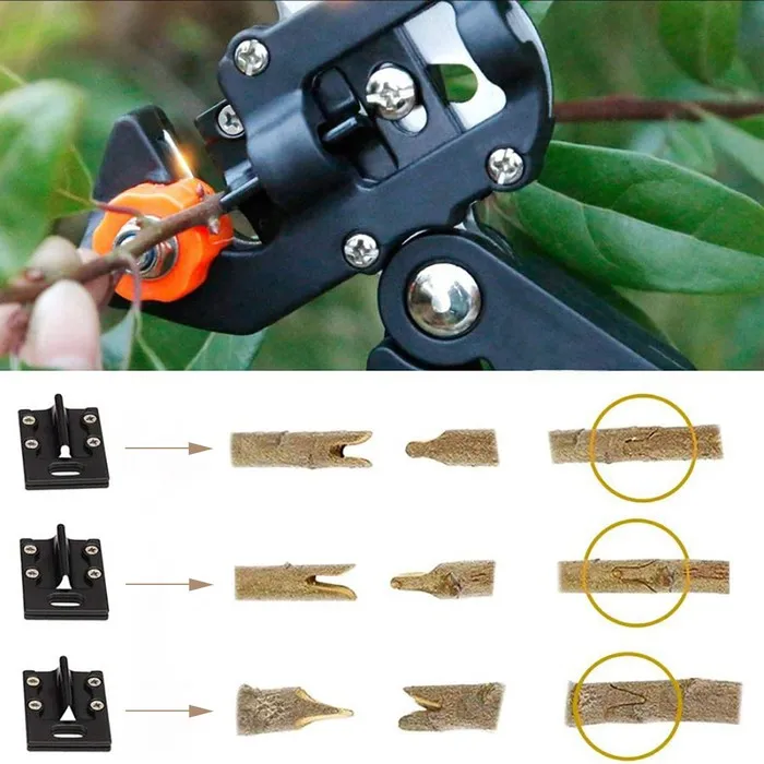 Фигурный нож делает зеркальные срезы на привое и подвое. После такой процедуры прививка происходит за минимальное количество времени.