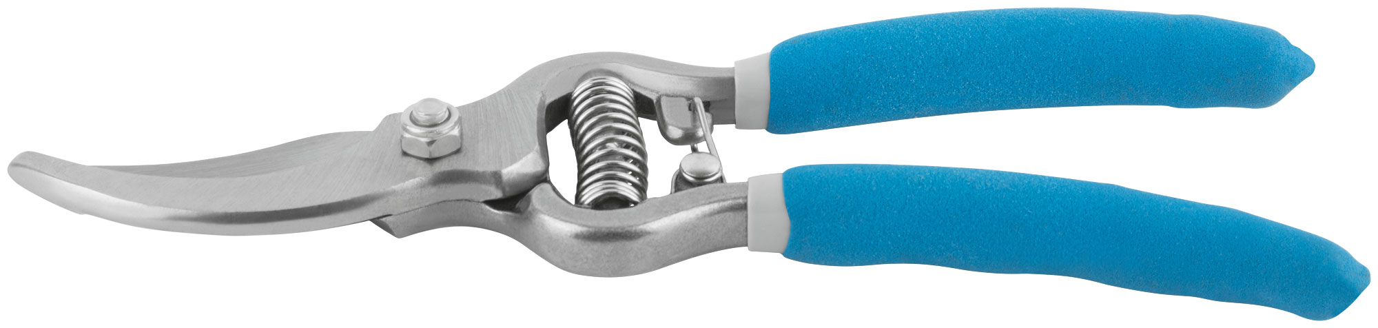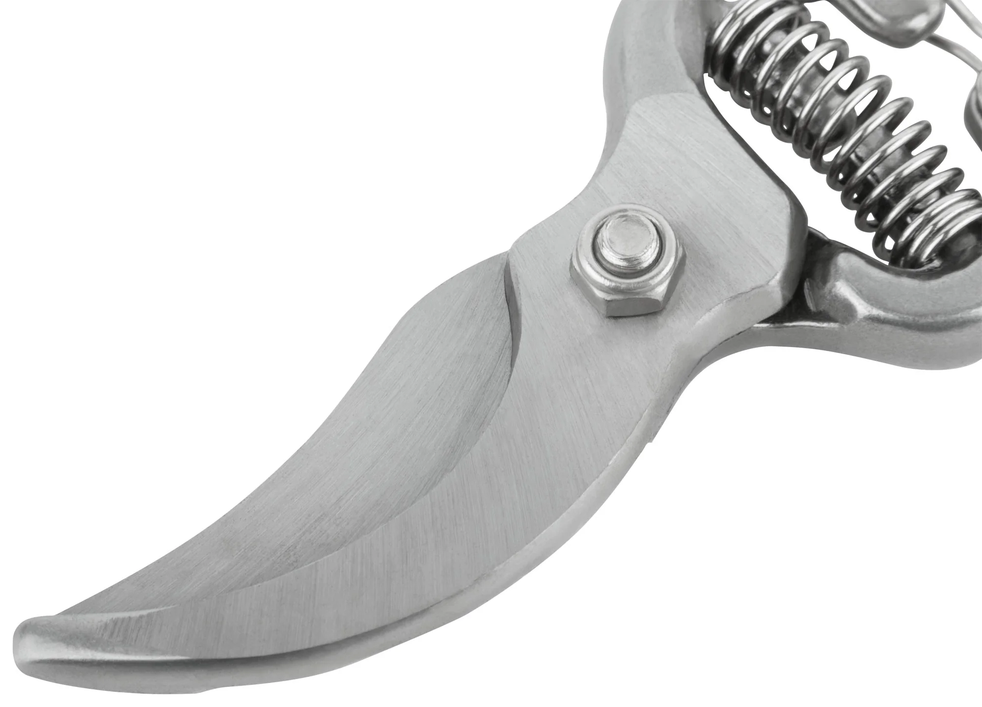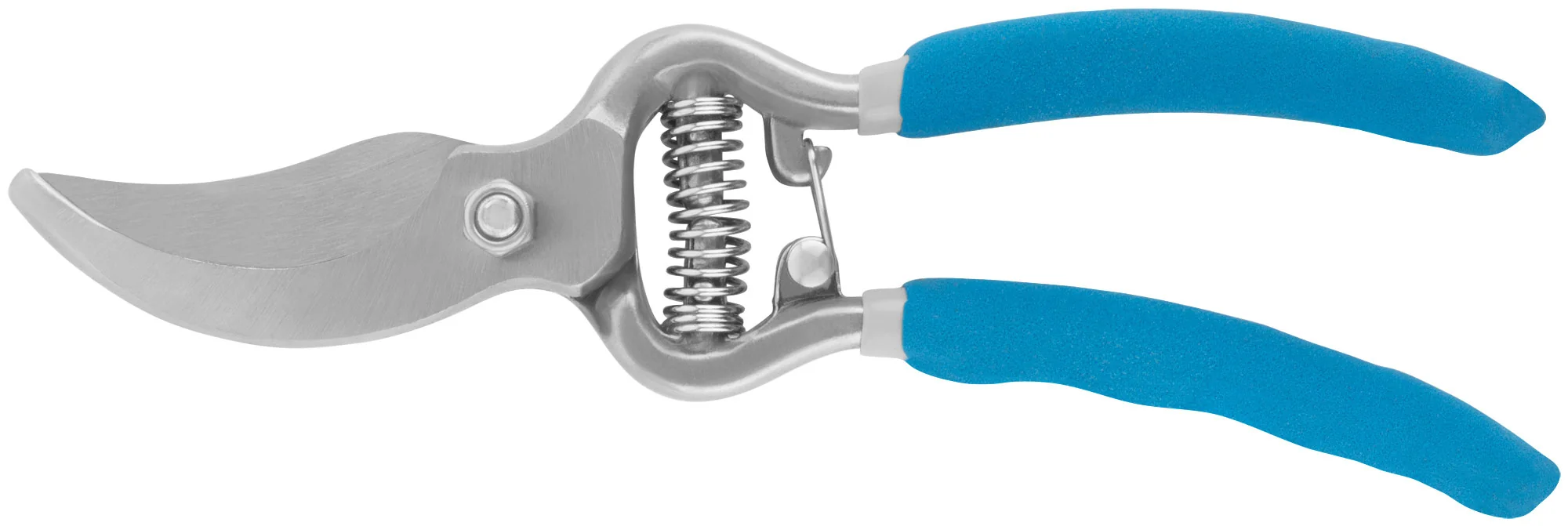 Секатор изготовлен из инструментальной стали, что гарантирует его долговечность и эффективность. Усиленная проволочная пружина обеспечивает плавность работы и снижает нагрузку на руки. ПВХ покрытие изогнутых ручек обеспечивает комфортный захват и минимизирует скольжение.