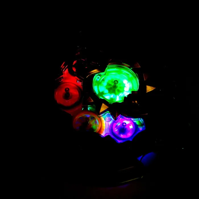 - Во время игры крутятся шестеренки, загорается подсветка и воспроизводятся звуки стрельбы.