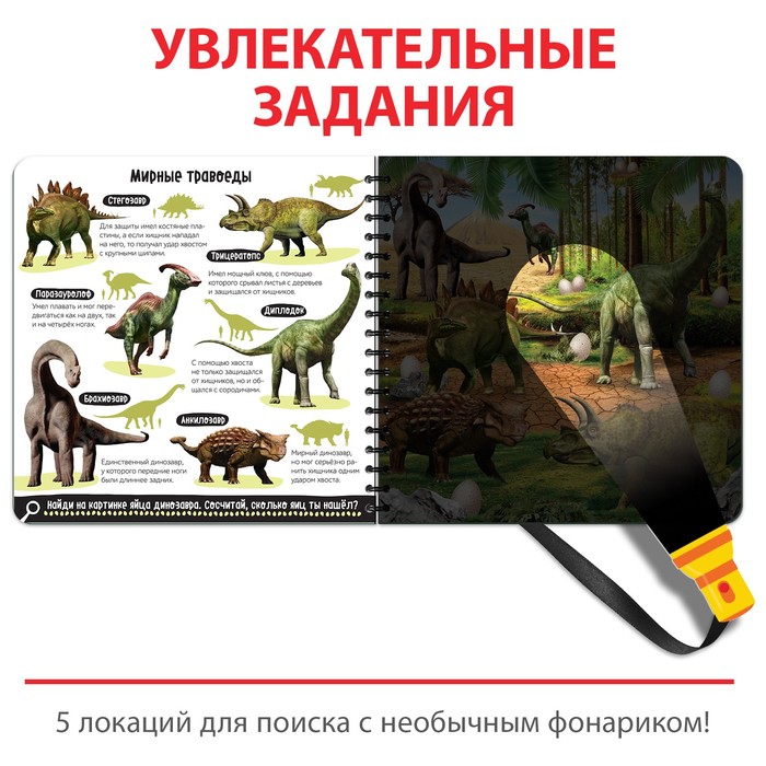 Секретная книга с волшебным фонариком «Диноленд» привлекает внимание ребёнка своей необычной задумкой.
