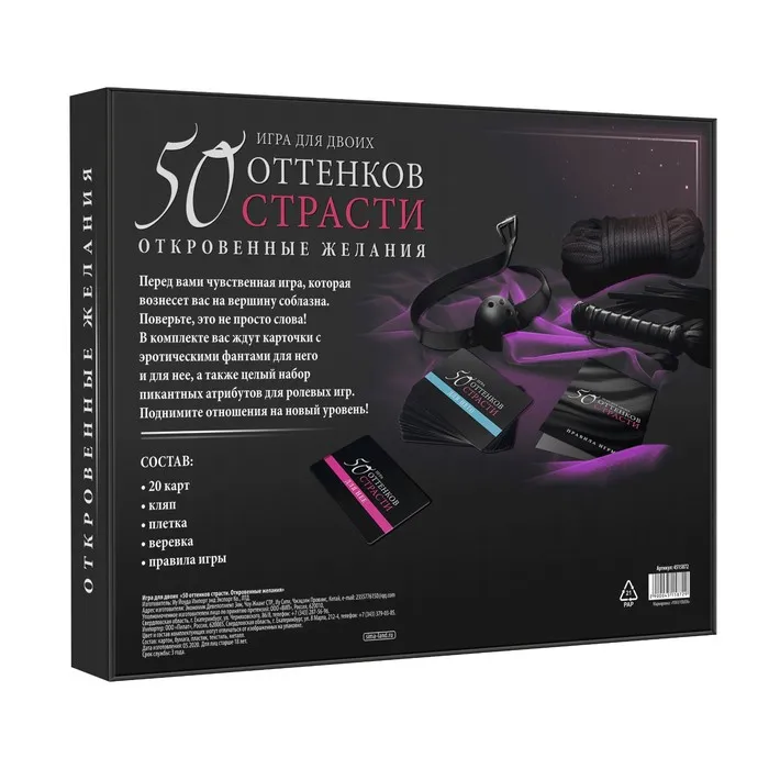 Секс – это обмен энергией, фейерверк чувств и непреодолимое желание завладеть любимым человеком. Иногда стоит идти на смелые решения, чтобы оказаться на вершине и приятно удивить партнера. Готовы сыграть по правилам? Тогда приготовьтесь узнать о новых источниках удовольствия вместе с игрой «50 оттенков страсти».