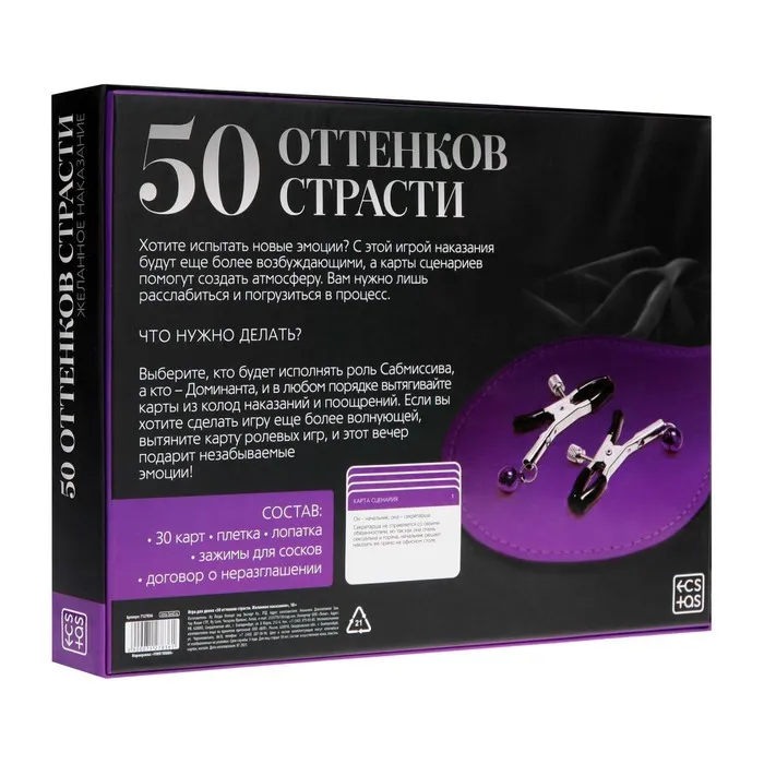 «50 оттенков страсти» — это серия эротических игр для двоих, в которых используются БДСМ-практики и соответствующие аксессуары. Благодаря этим играм можно испытать уникальные ощущения и узнать о новых источниках удовольствия!