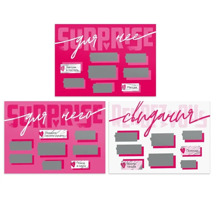 Выбирайте одно из заданий: «для него» и «для нее», стирайте скретч-слой и выполняйте написанное.