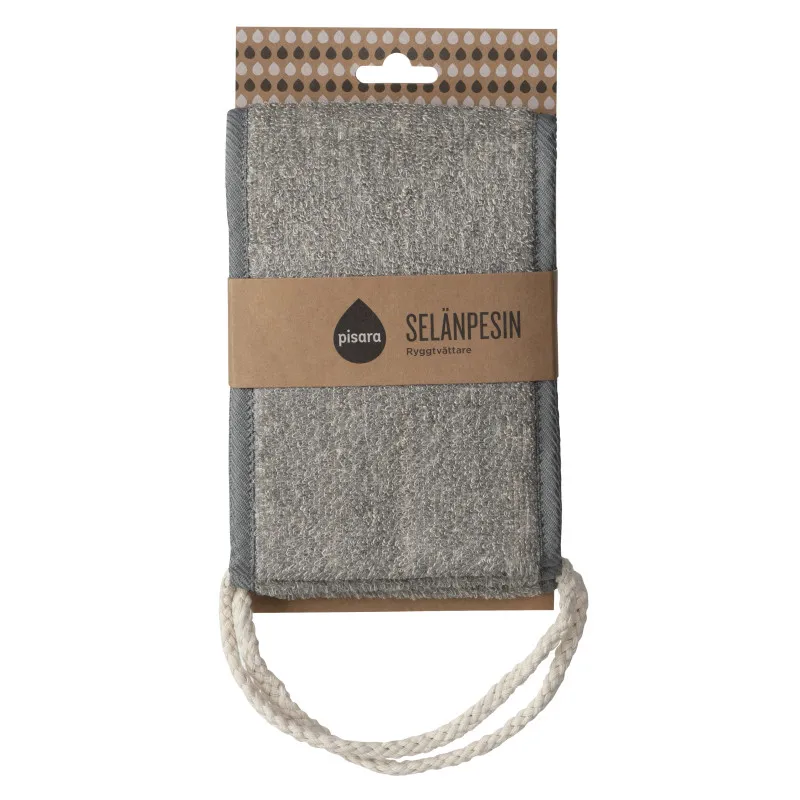Двусторонняя щетка для спины Pisara позволяет выбрать более мягкую или более жесткую сторону. Благодаря ручным петлям на концах, всю спину можно легко помыть самостоятельно.