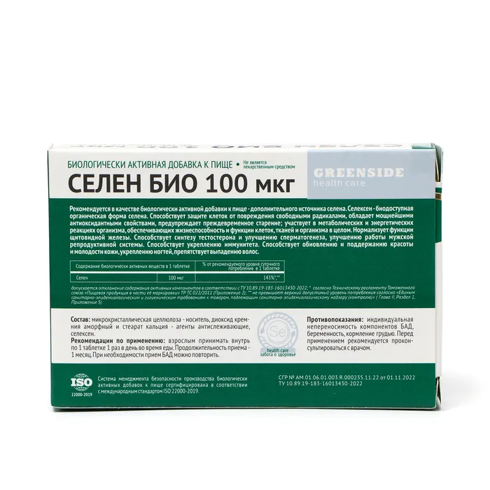 Селен Био 100 мкг не является лекарственным средством и не может заменить полноценное питание. Перед применением необходимо проконсультироваться с врачом.