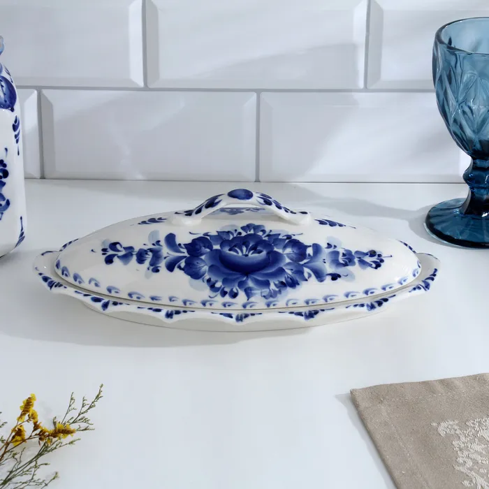 Селёдочница «Семейная», с крышкой, 28,5×14,5×9 см, гжель — Характеристики