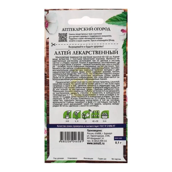 Является лекарственным растением: используют чаи из цветков и листьев, настои и отвары корней алтея и корневищ. Применяется как мягкое отхаркивающее, противокашлевое, противовоспалительное средство при острых и хронических заболеваниях дыхательных путей, язвенной болезни желудка и двенадцатиперстной кишки. Трава алтея содержит крахмал, пектин, минеральные вещества, 35% слизи, что позволяет надолго покрывать слизистые оболочки организма защитным слоем, предохраняя их от дальнейшего повреждения, при этом облегчается самопроизвольная регенерация поврежденных тканей.