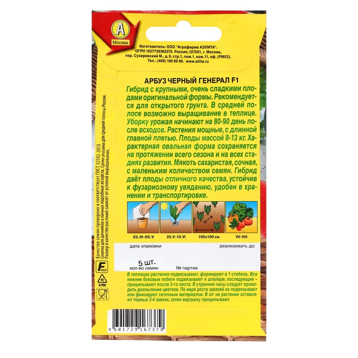Семена Арбуз «Чёрный генерал», F1, 5 шт., «Аэлита» — Характеристики