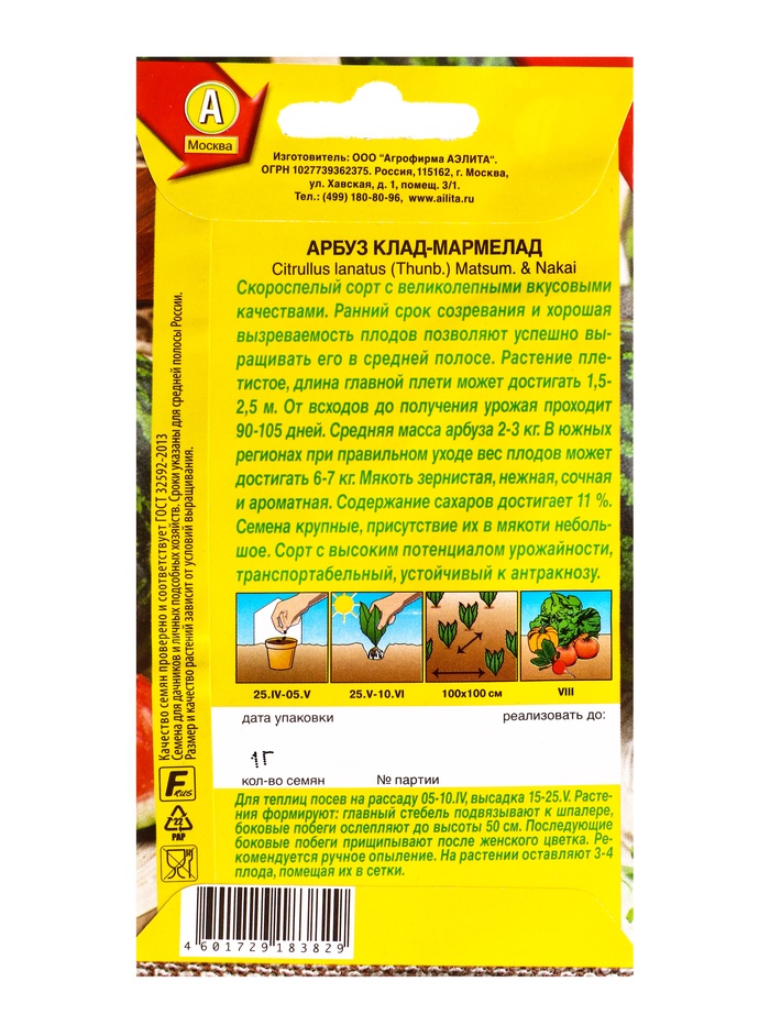 Семена Арбуз «Клад-мармелад», 1 г, «Аэлита» — Характеристики