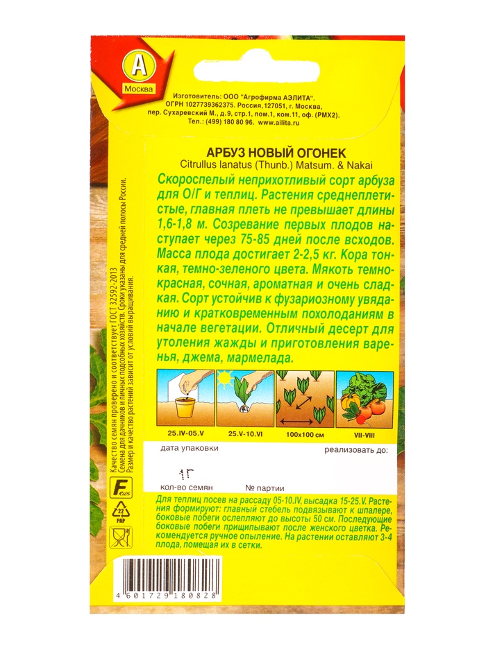 Семена Арбуз «Новый огонек», 1 г, «Аэлита» — Характеристики