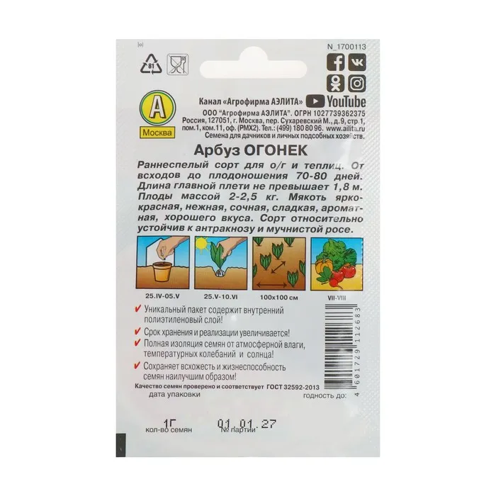 Семена Арбуз "Огонек" "Лидер", 15 шт. — Характеристики