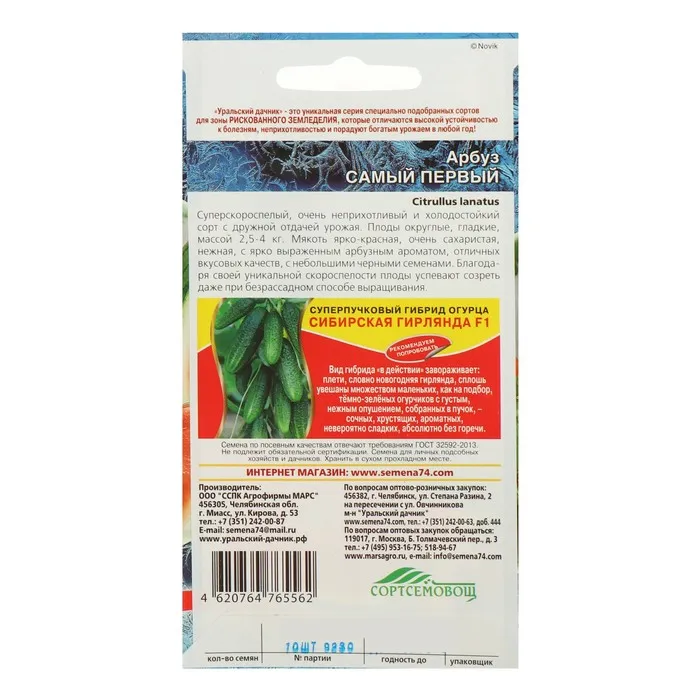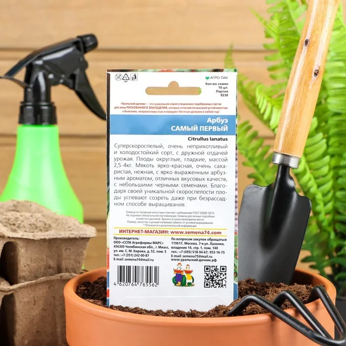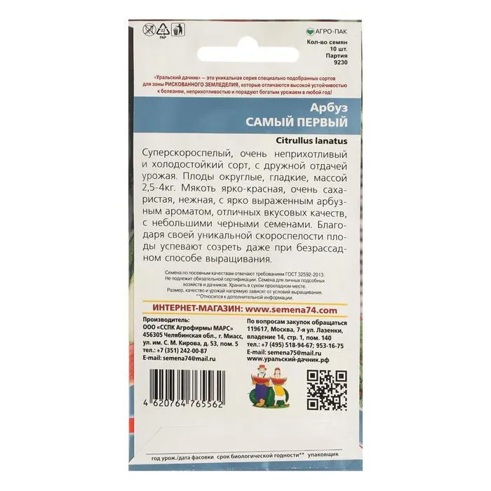 Семена Арбуз "Самый Первый", ультраскороспелый, 3-4 кг, 10 шт. — Характеристики